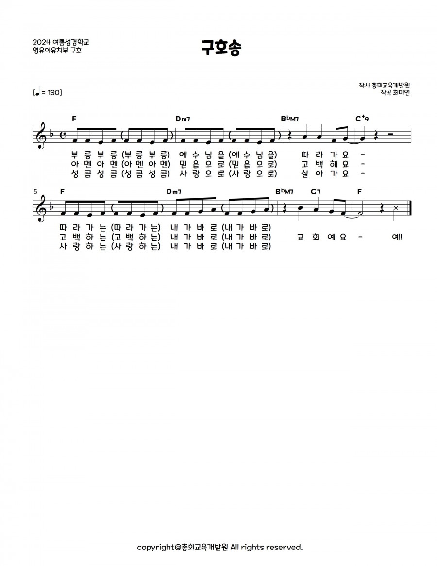 2024 여름성경학교 영유아유치부 구호송 악보입니다