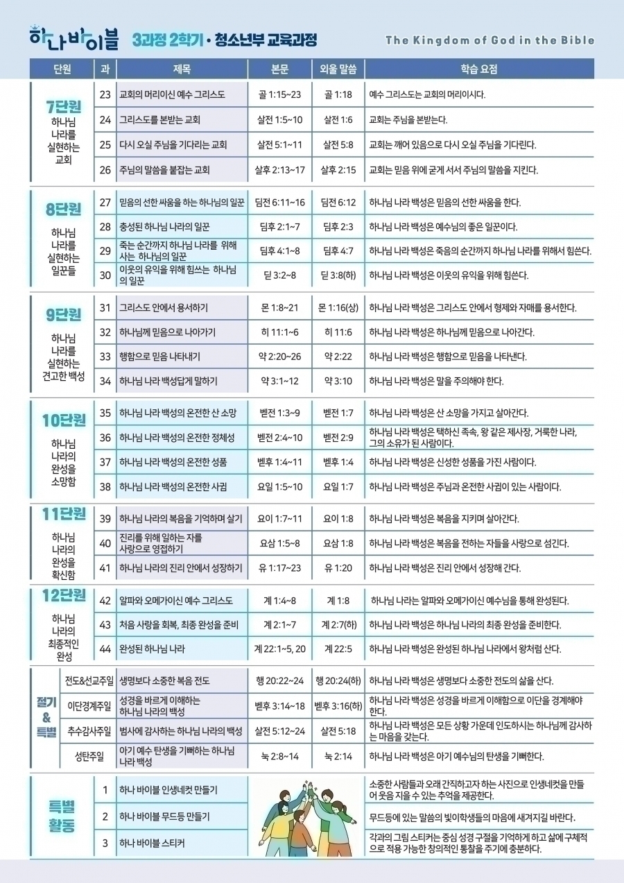 [교육과정] [교육과정] 2023년 3과정 2학기 청소년부 하나바이블 교육과정 및 교재 미리보기